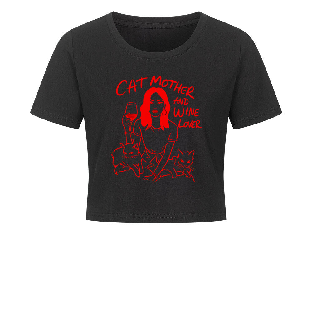 Cat Mother And Wine Lover-Ladies Cropped Tee