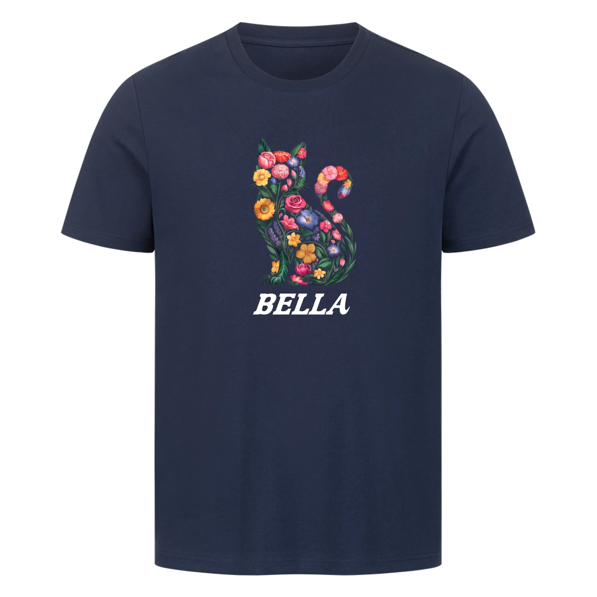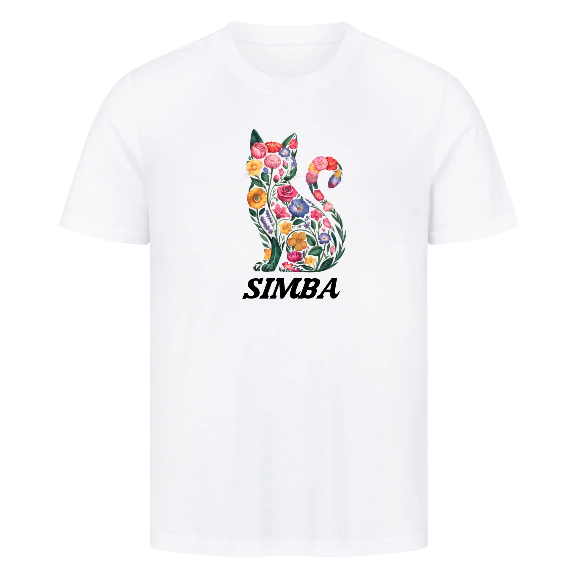 Personalisierte Blumige Katzen Design mit Name - Premium Unisex T-Shirt