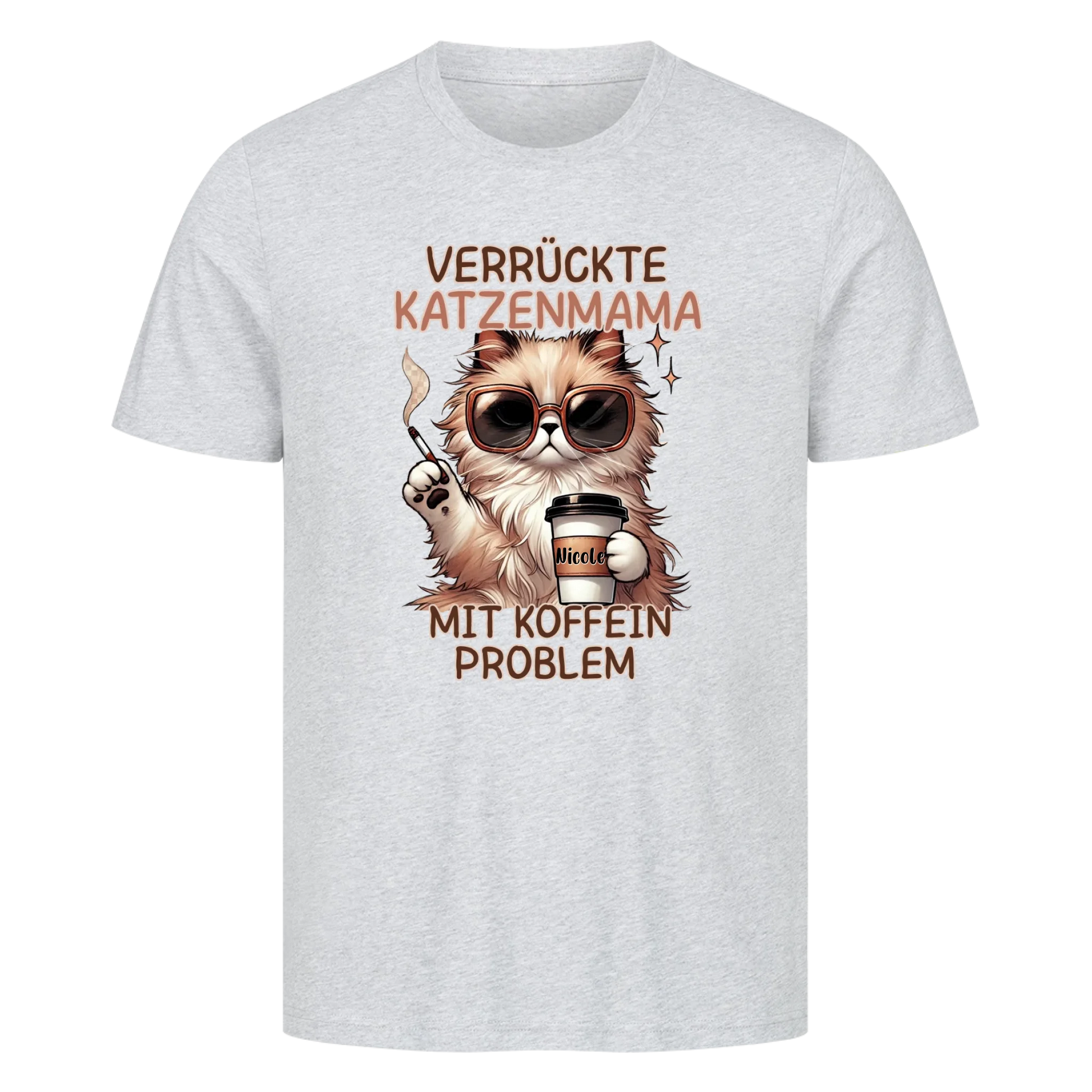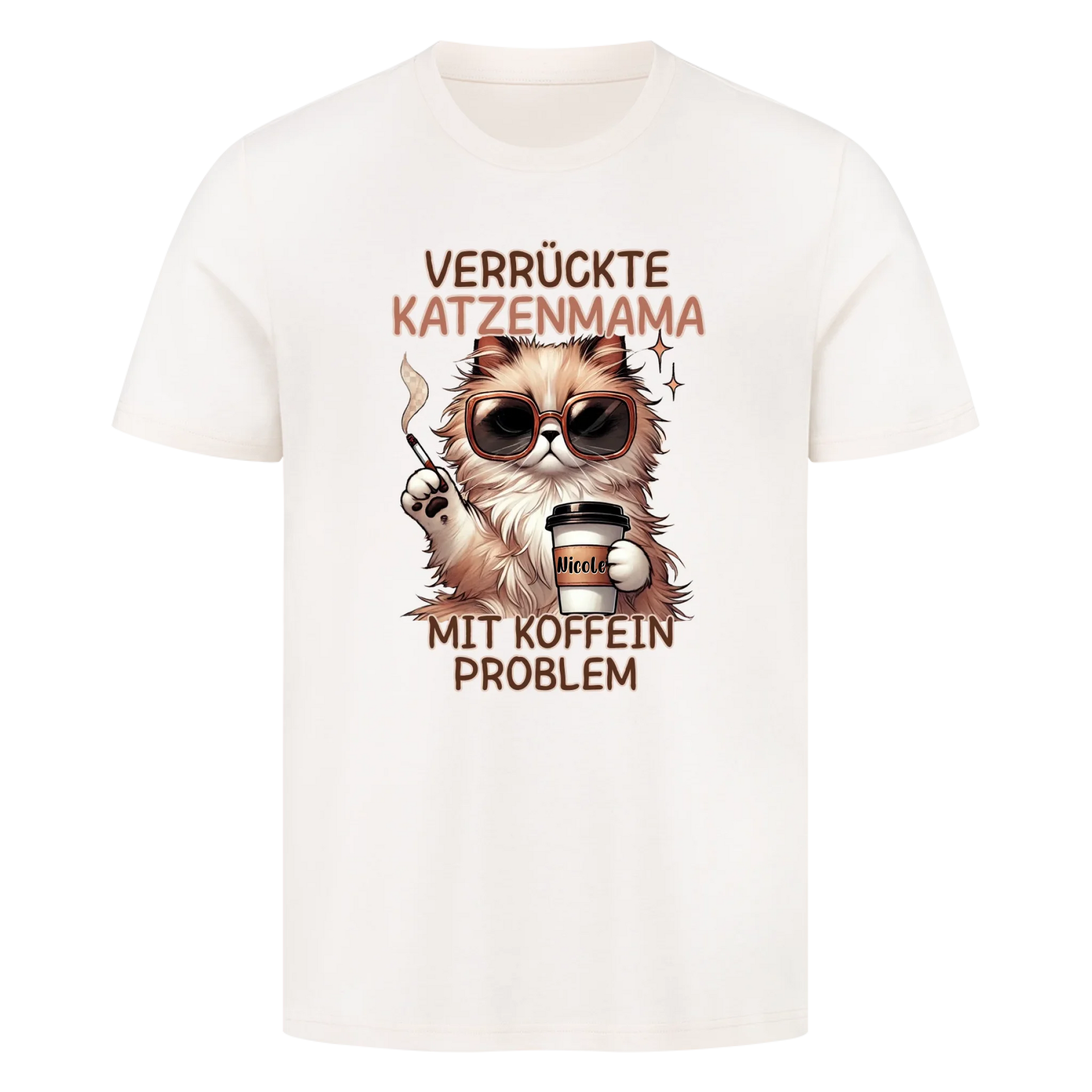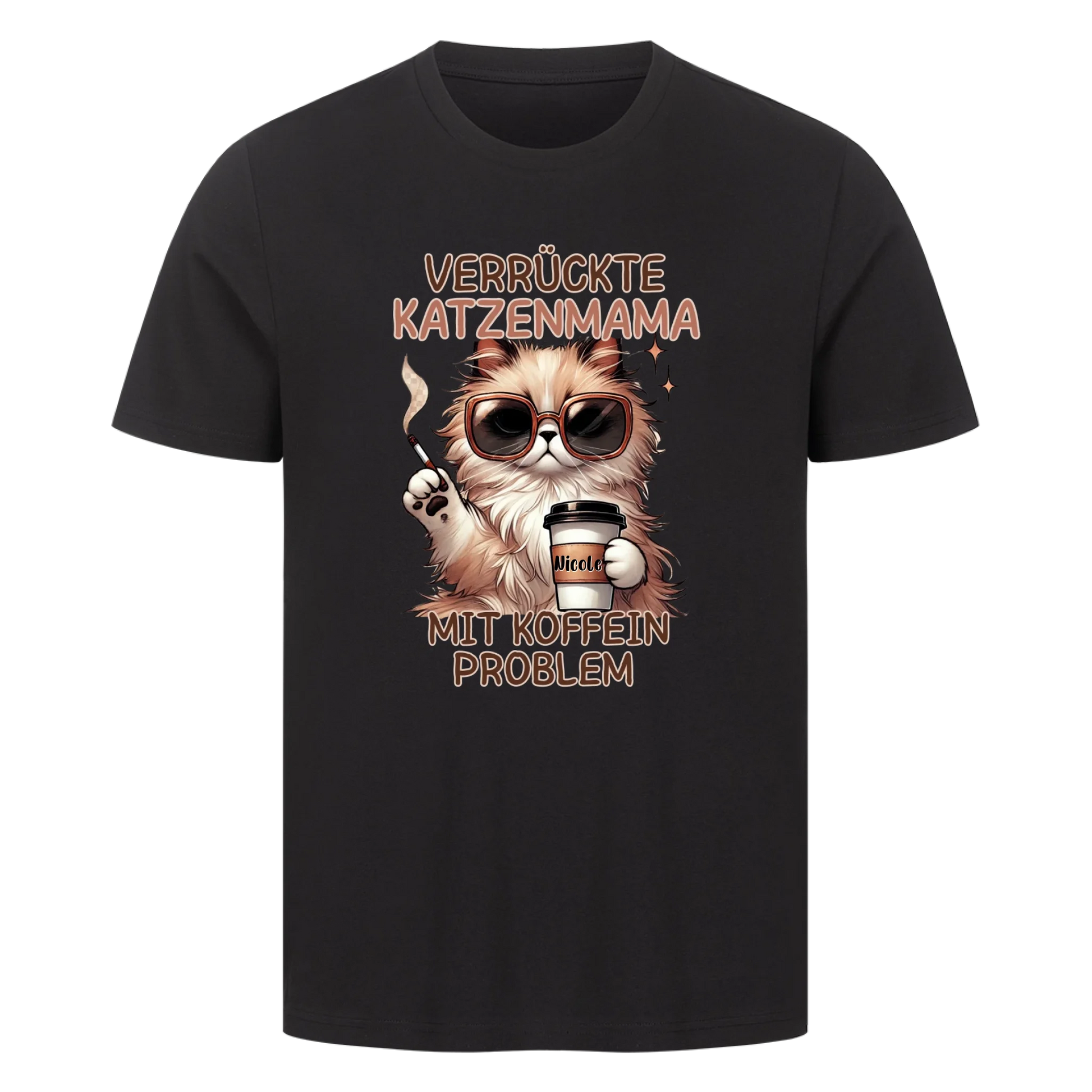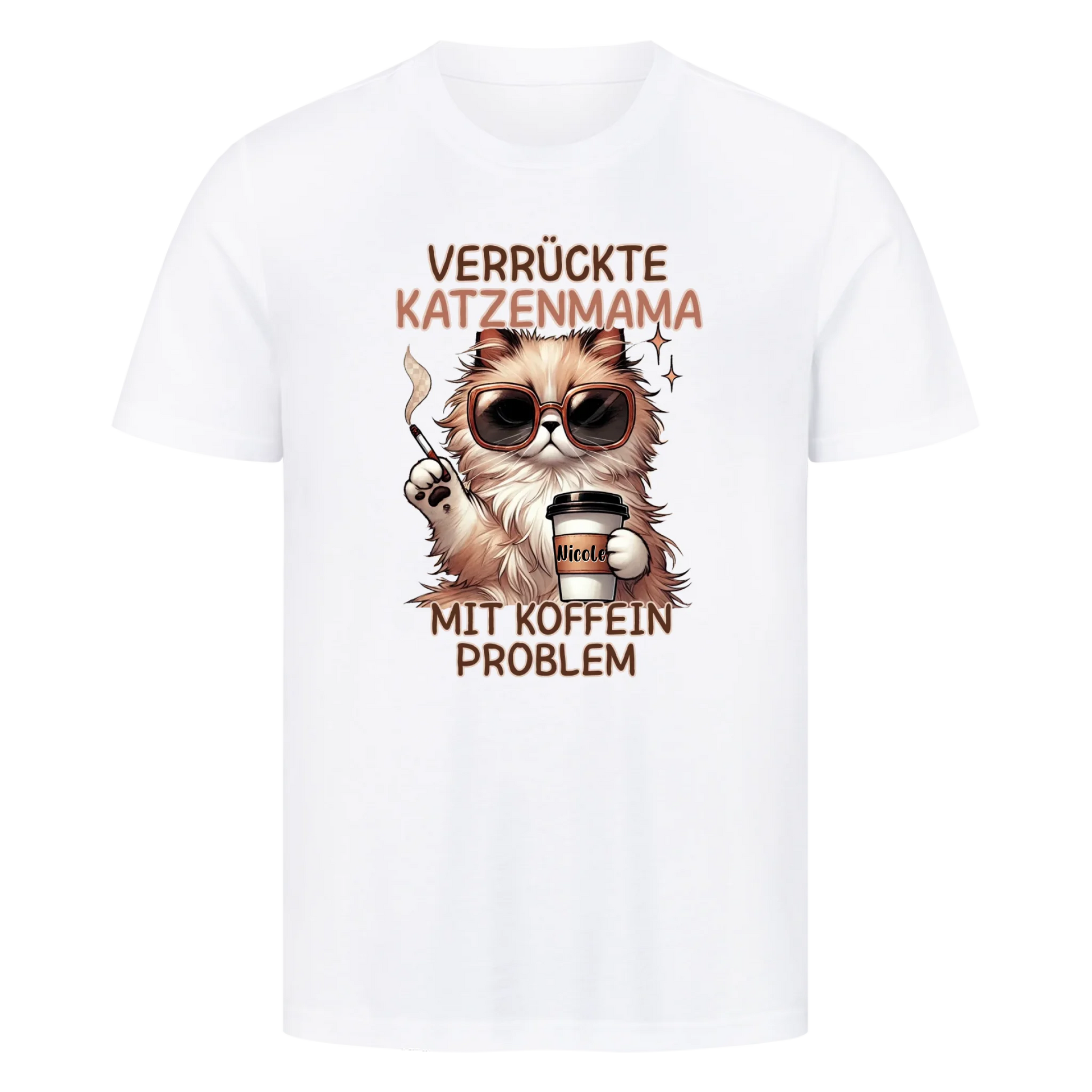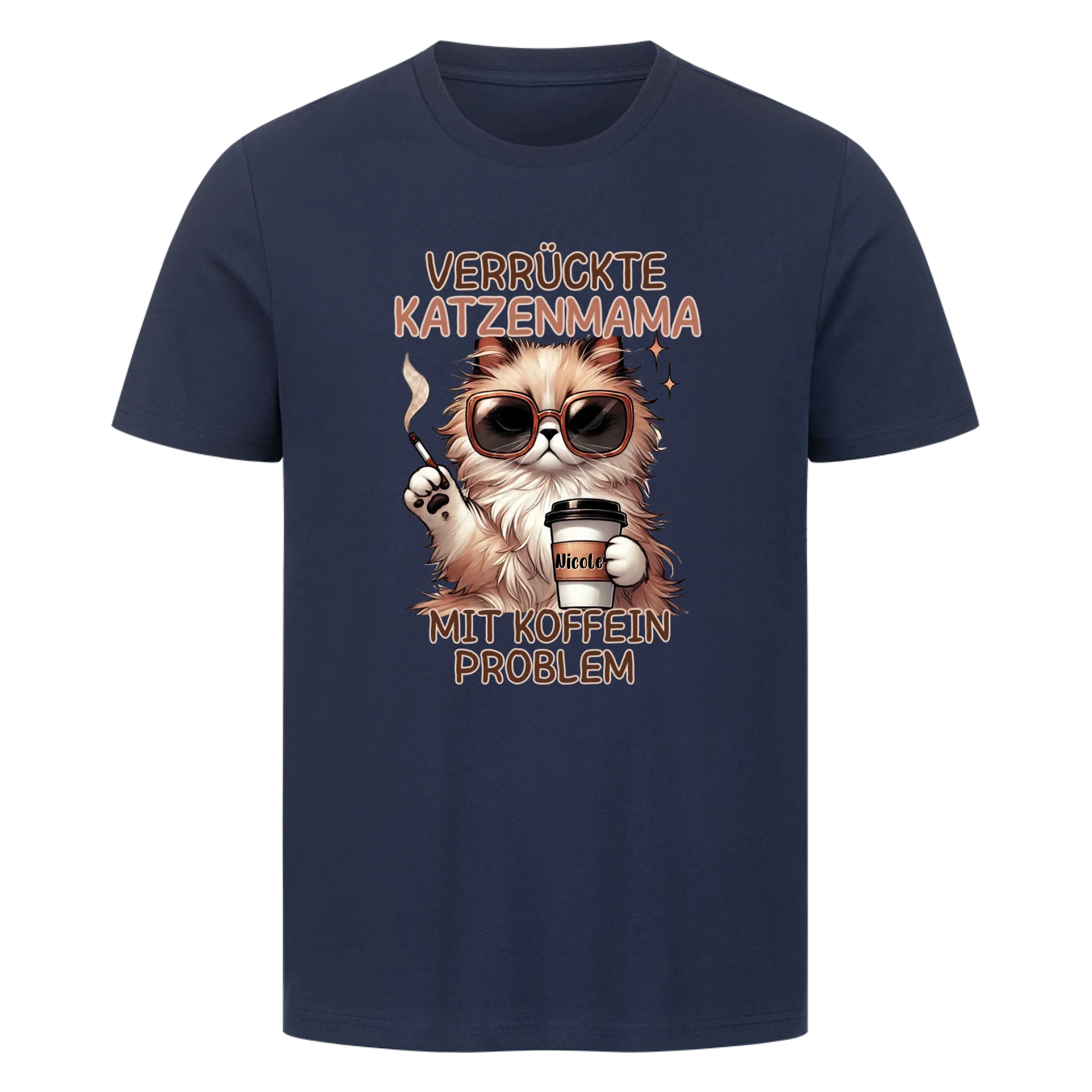 Verrückte Katzen Mama mit Name auf dem Becher- Basic T-Shirt